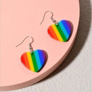 NEW LBGTQ HEART SHAPED RAINBOW EARINGS KIDS LOVE IS LOVE EARRINGS DANGLE GAY PRIDE