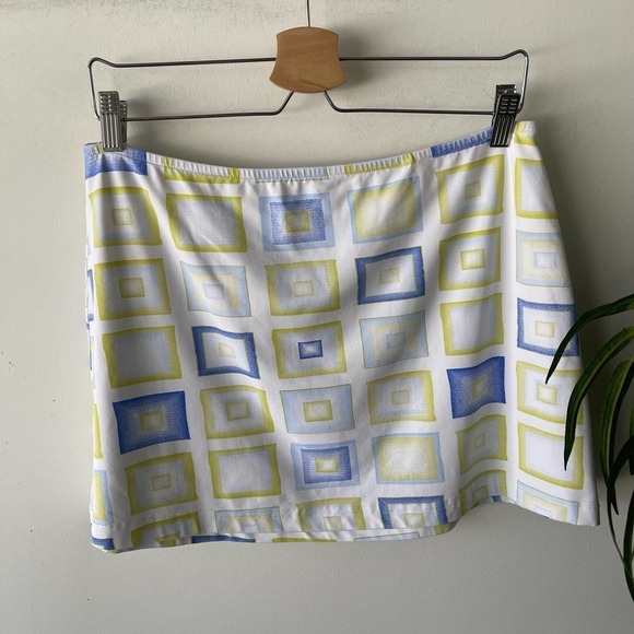 LBH Skirt Womens L White Green Blue Geometric Mini Retro Summer Party Festival