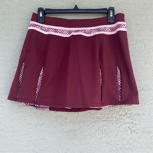 LBH Women's Pleated Tennis Skort M Burgundy & Pink Built-in Shorts