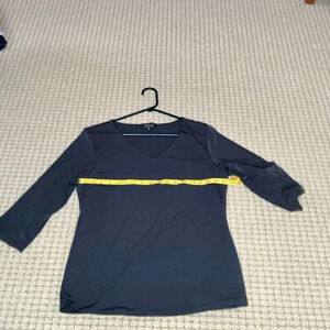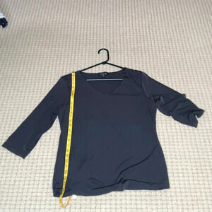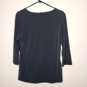 This very pretty and soft top from LBISSE has comfort and classic style at the same time. Made of polyester and spandex, it has a beautiful drape when on and is well constructed. This top is in EXCELLENT used condition; looks new off the rack! Three quarter length sleeves are 18", pit2pit is 18" and the body length from shoulder to hem is 26". Measurements are from laid flat.