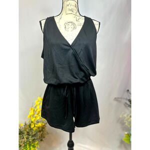 LBLC the Label Lauren Romper Drawstring Waist Pockets Black L
