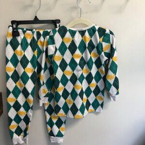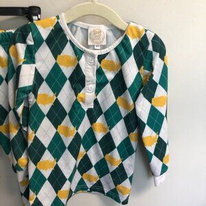 LBS little bear smocks Green Yellow Masters Print pjs pajamas size 4T