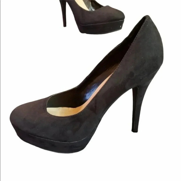 LC Johanna Black 10M faux suede platform 5" heels