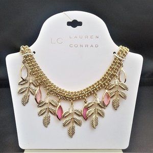 LC LAUREN CONRAD GOLD PLATED PINK , CLEAR LEAF STATEMENT NECKLACE NWT