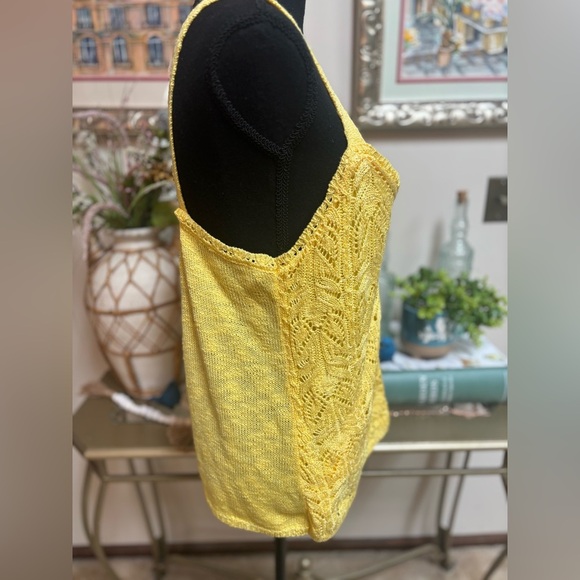 LC LAUREN CONRAD LEMON YELLOW POINTELLE CROCHET KNIT STRAPS TANK TOP SZ XL