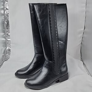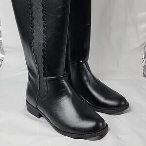 HELLO ,THESE LAUREN CONRAD STYLE MOLASSES COLORWAY BLACK KNEE HIGH HEELED BOOTS ARE NEW WITH BOX 📦. THE WOMAN'S SIZE IS 7 WIDE CALF WIDE WIDTH, FOR A COMFORTABLE FEELING. THEY BLACK WITH SCALLOP ON THE SIDES WITH ZIPPERS ON ONE SIDE AND STRECH MATERIAL ON THE OTHER SIDE . THESE BOOTS FEATURE A ALMOND TOE STYLE. COMFORTABLE INSOLES. THROW ON SOME JEANS ,WESTERN DANCING 🕺 😳, OR SOME JEAN SHORTS AND YEHAWW, WILL BE ROCKING ,THANKS .