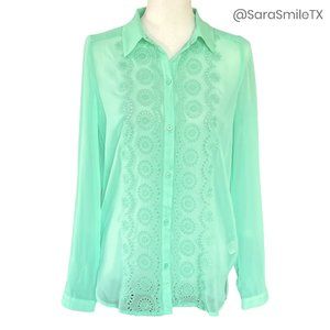 LC LAUREN CONRAD Mint Green Embroidered Lightweight Long Sleeve Top NWOT