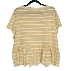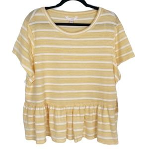 LC LAUREN CONRAD Petite Top Peplum Short Sleeves Yellow Stripe LP