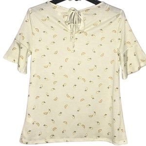 LC LAUREN CONRAD Petite Top Stripe Bell Sleeve Tie-Back Lemon Yellow Sizes MP LP