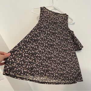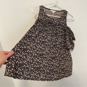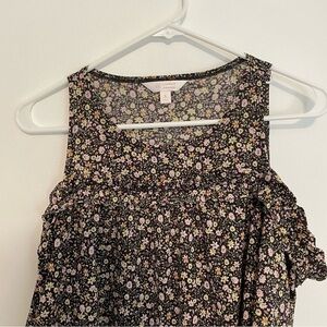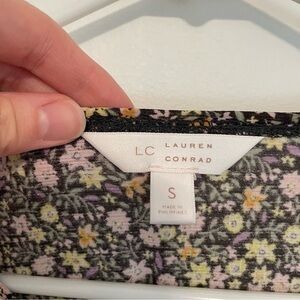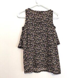 LC LAUREN CONRAD Ruffle Cold Shoulder Top Black Lilac Lavender Multi Floral Boho