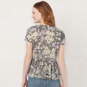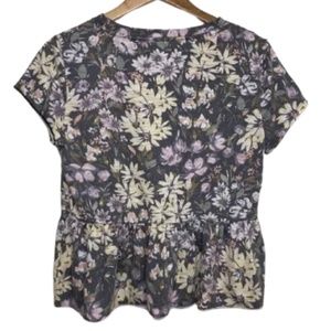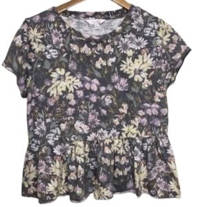 LC LAUREN CONRAD Top Floral Crewneck Jersey Peplum Short Sleeve Gray X-Large