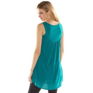 Challis hem lends a decorative touch to this crochet trim tunic top from LC Lauren Conrad.