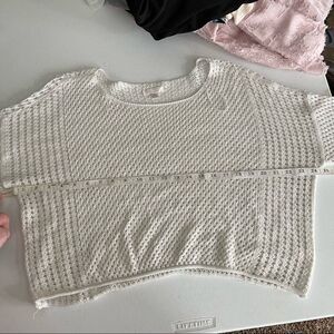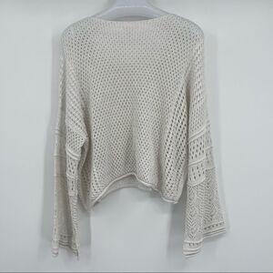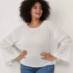 LC LAUREN CONRAD WHITE POINTELLE CROP BELL SLEEVE SWEATER SIZE XL
