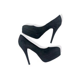 LC Lauren Conrad 5"Heels Stiletto Size 8 Black Faux Suede Platform Pumps Johanna
