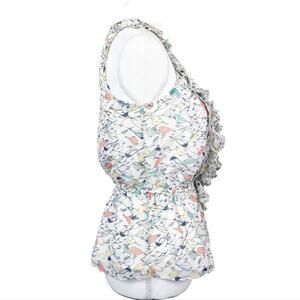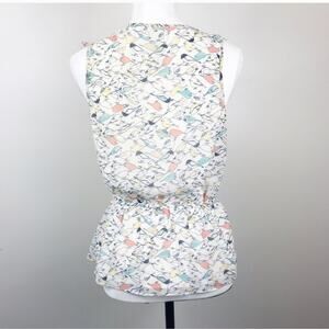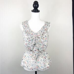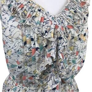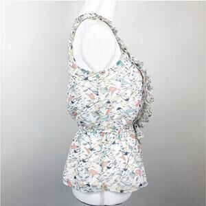 LC Lauren Conrad Bird Print Ruffled Sleeveless Blouse with Elastic Waist Small