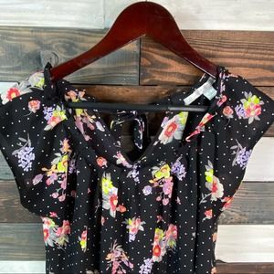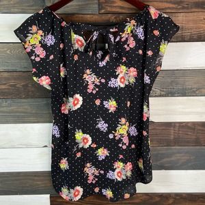 LC Lauren Conrad Black Floral Short Sleeve Blouse