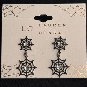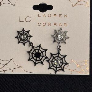 LC Lauren Conrad Black Sparkly Spiderweb Statement Earrings