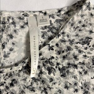 This sleeveless blouse from LC Lauren Conrad showcases a delicate black and white floral print, exuding a casual yet elegant vibe. Crafted from a lightweight fabric, it offers a relaxed fit with a graceful drape, perfect for layering or wearing on its own. The rounded neckline and simple hemmed armholes add to its versatile charm.