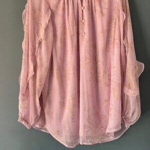 LC Lauren Conrad Blouse 1X Long Sleeve Pink Ruffle Romantic Feminine Cottagecore