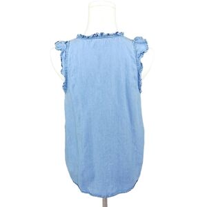 LC Lauren Conrad Blue Chambray Ruffle Top Sleeveless Keyhole Button Detail S