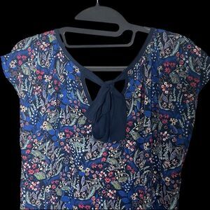 LC Lauren Conrad Blue Floral Cap Sleeve Blouse, Tie At Neck, Lightweight, Medium