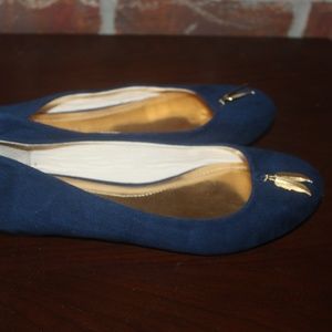 LC Lauren Conrad Blue Suede Ballet Flats Gold metal Feather on toe 7.5M EUC…