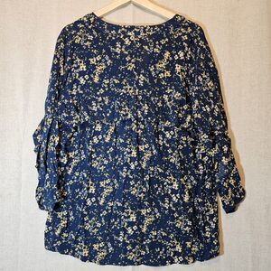 LC Lauren Conrad Blue W/ Yellow Floral High Low Ruffle Boho Tunic Large