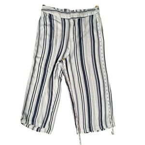 These chic capris from LC Lauren Conrad feature a striking blue and white vertical stripe pattern, offering a relaxed and flowy fit. Perfect for a casual day out, their high-waisted design adds a touch of elegance to any ensemble.