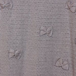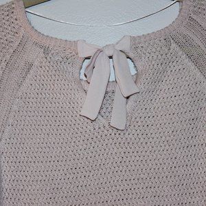 Details: this sweater has small bows on the front, and nice close-woven, lightweight knit that is perfect for early autumn or spring.