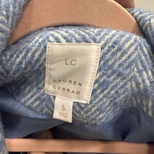LC Lauren Conrad Coat Womens Small Blue Herringbone Wool Blend Button Front