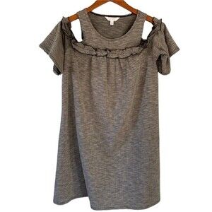 LC Lauren Conrad Cold-Shoulder Ruffle Knit Shift Dress Short Sleeve Scoop Neck