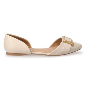 Elegant cream flats with a stylish gold buckle. Perfect for casual or formal wear.