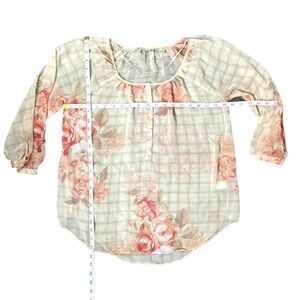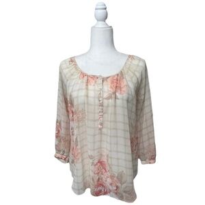 LC Lauren Conrad Cream Striped Floral Sheer Long Sleeve Top - Size Small