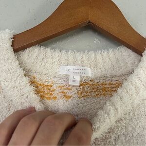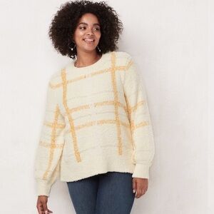 LC Lauren Conrad Cream Yellow Plaid Sherpa Sweater Soft Comfy Fall Neutral Large