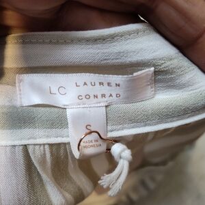 LC Lauren Conrad Cream and Gray Striped Blouse