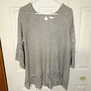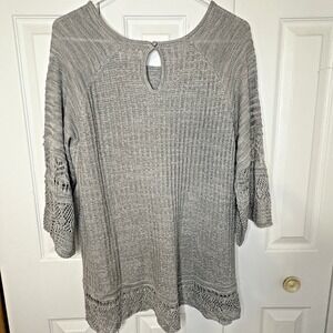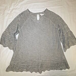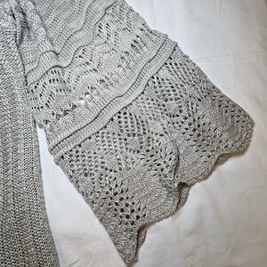 LC Lauren Conrad Crochet Pointelle Sweater XL High-Low Bell Sleeves Lightweight
