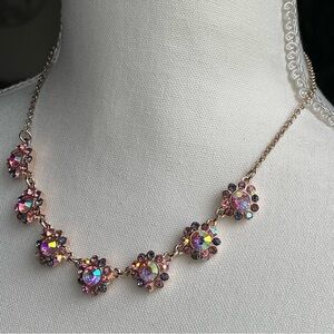LC Lauren Conrad | Elegant Floral Gold Tone Necklace with Multicolor AB Crystals 16" + 2" Extender.