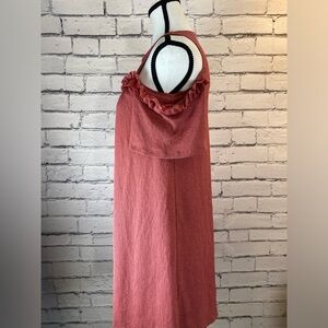 EUC Lauren Conrad boho inspired dusty pink cold shoulder dress. The top has embroidered floral around the neckline with a ruffle. Cold shoulder arm holes. Size XS, but oversized