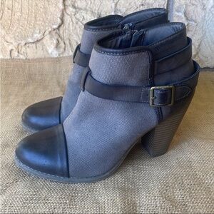LC Lauren Conrad Farren Booties High Heel Brown Canvas Side Zip