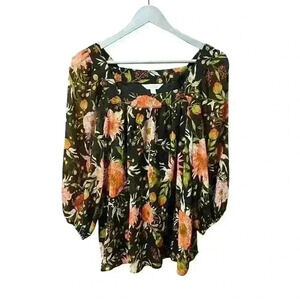 LC Lauren Conrad Floral Square Neck Peasant Top – Size Medium