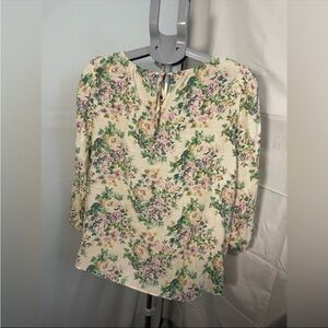 LC Lauren Conrad Floral Top Long sleeve Cream soft spring colors Size XL