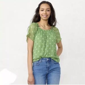 LC Lauren Conrad Flowy Shirred Green Blouse
