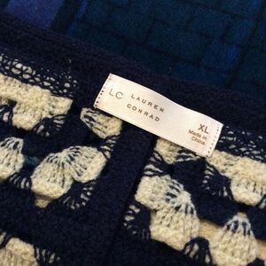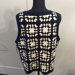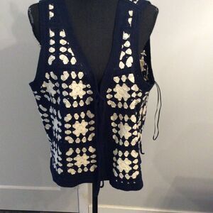 LC Lauren Conrad Granny Square Crocheted Vest Navy White XL