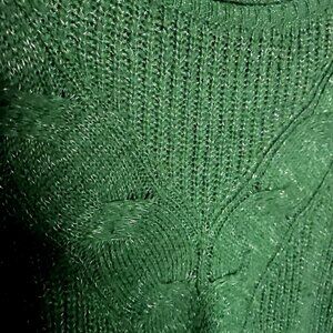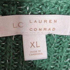LC Lauren Conrad women’s green crew neck sweater with woven silver sparkle XL. Gently used condition. Measurements are: 29” sleeve (measured from neck seam), 32 ½” from shoulder to hem, and 30 ½" from armpit to armpit.