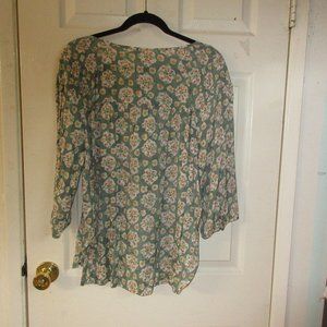 LC Lauren Conrad Green Floral Print Blouse Top 3/4 Sleeve Scoop Neck size XXL
