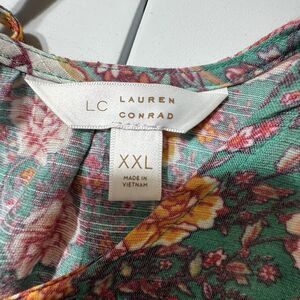 LC Lauren Conrad Green Pink floral BoHo peasant top Plus size XXL Tie Neck E U C
