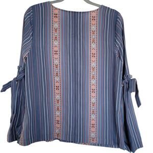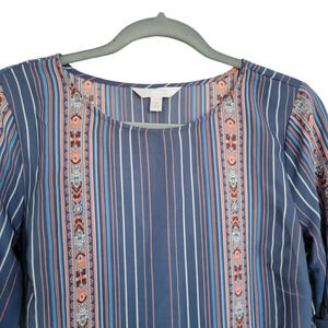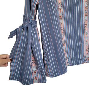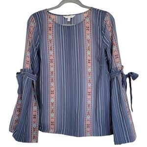 LC Lauren Conrad Indigo Sky Striped Printed Bell Long Sleeve Blouse Women Sz M