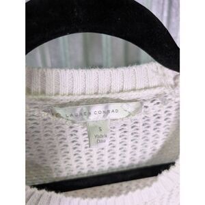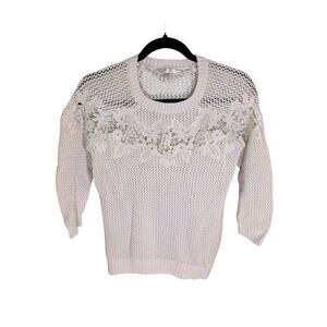 LC Lauren Conrad LACE PIECED OPEN STITCH SWEATER, Floral Lace Inset Ivory Women'
