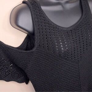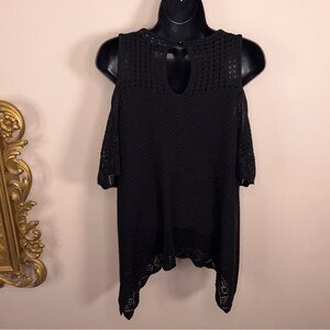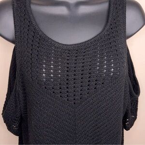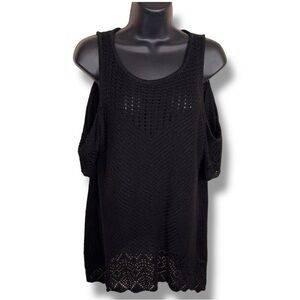 LC Lauren Conrad Large Black Knit Top Cold Shoulder Style Open Knit Short Sleeve