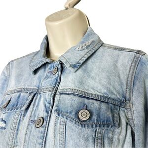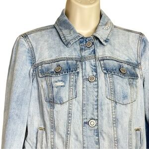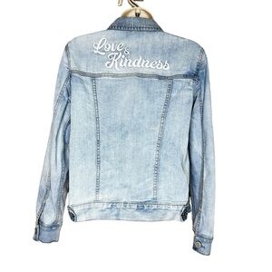 LC Lauren Conrad Love & Kindness Embroidered Distressed Denim Jacket Size XS